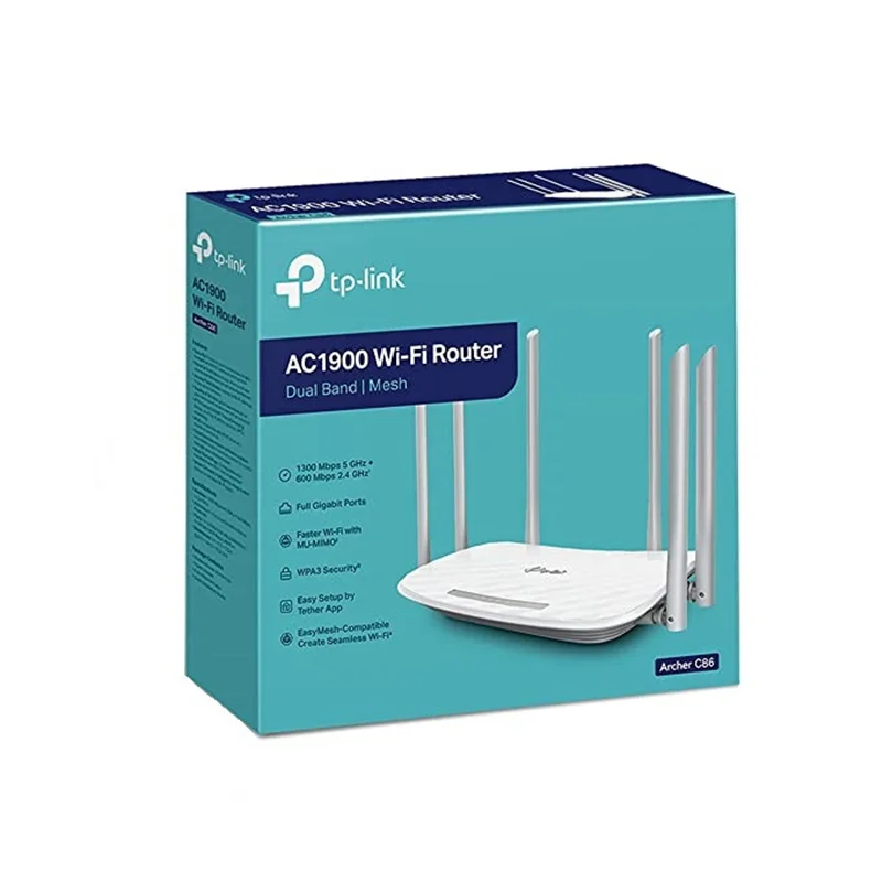 روتر Archer C86 محصولی جدید از شرکت تی پی لینک (TP-Link) می باشد. این روتر با بهره وری از 6 آنتن خارجی که از کارایی و کیفیت بالایی برخوردار است ، در هر قسمت از منزل خود به شبکه پر سرعت وای فای دسترسی خواهید داشت. در کنار این موارد فناوری BeamForming دستگاهها را شناسایی کرده و قدرت سیگنال وایفای را تقویت و به سمت دستگاه ها متمرکز میکند و همچنین دارای 4 پورت Lan با سرعت گیگابیتی 10/100/1000 می باشد.