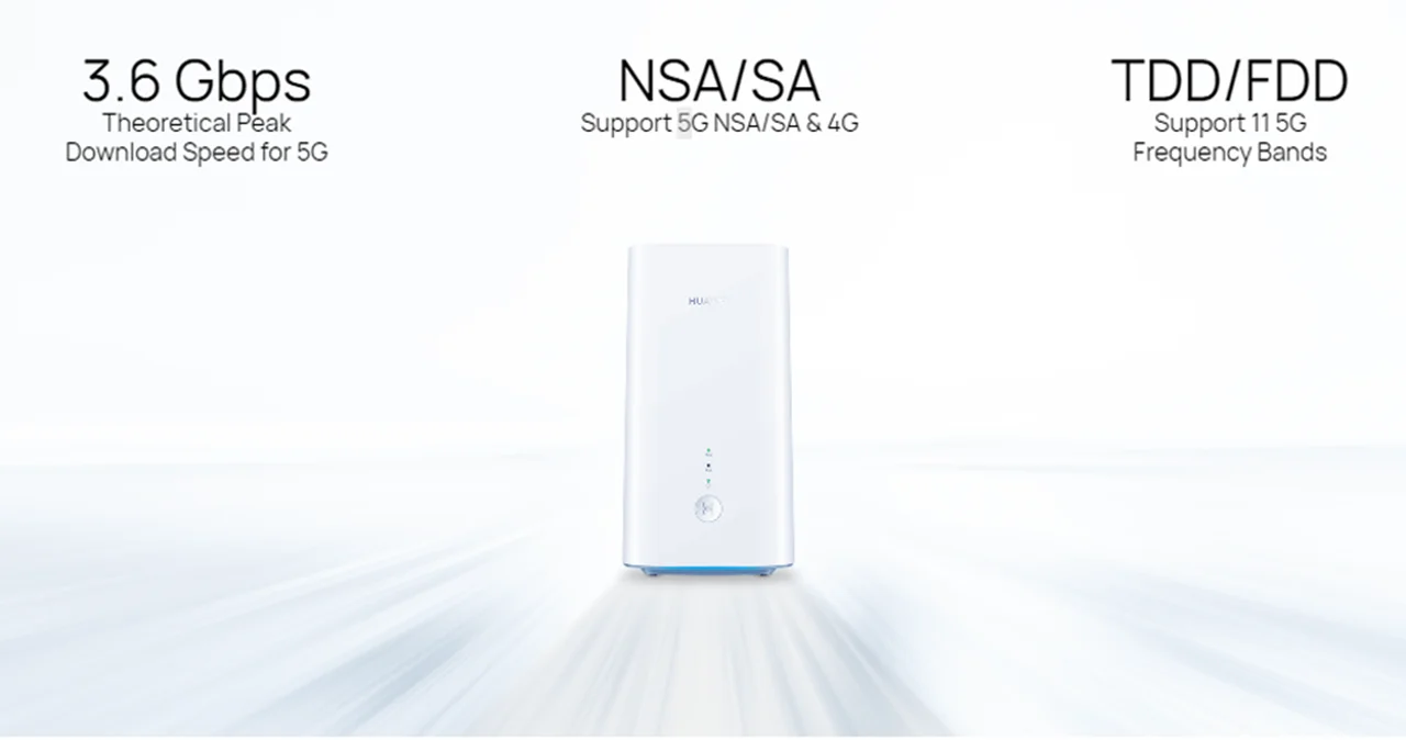 مودم هواوی 5G CPE Pro 2 یک روتر بی سیم جدید 5G است که از نسل اول Huawei 5G CPE Pro ارتقا یافته است. با چیپ ست Hisilicon Kirin 990 5G SoC ، Huawei 5G CPE Pro 2 می تواند سرعت بارگذاری را به 20٪ – 60٪ در مسافت کوتاه و 200٪ – 400٪ در فاصله دور بهبود بخشد و از حالت های 5G دوگانه (NSA / SA) در فرکانس 11 5G پشتیبانی می کند باندها (n1 / n3 / n5 / n / 7 / n28 / n38 / n40 / n41 / n77 / n78 / n79). Huawei 5G CPE Pro 2 به عنوان اولین روتر 5G جهان با استاندارد WiFi 6+ می تواند از پهنای باند 200 مگاهرتز با سرعت بارگیری تا 3.6Gbps پشتیبانی کند. حداکثر 20 دستگاه بی سیم می توانند با Huawei 5G CPE Pro 2 متصل شوند و از موج سواری با سرعت بالا لذت ببرند. این یک فناوری پویای باند باریک برای افزایش 30 درصدی پوشش دارد و از شتاب بازی های موبایل Game Turbo Dual Channel Mobile پشتیبانی می کند.