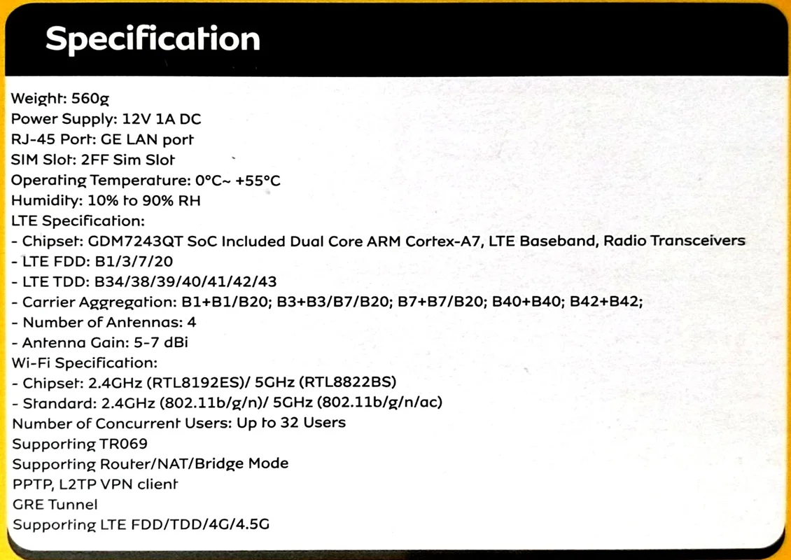 ویژگی های TF-i60 B1 : - پشتیبانی از شبکه های: 4G 4.5G TDLTE