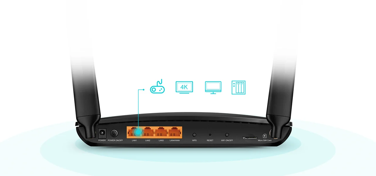 مودم 4.5G تی پی-لینک مدل Archer Mr600 یکی از محصولات خوب و با کیفیت این کمپانی خوشنام به شمار می رود که از نظر ظاهری شباهت زیادی به مودم سری قبل دارد. این محصول در ابعاد استانداردی به اندازه 229×160×37 میلی متر و وزنی مناسب تولید و عرضه شده است؛ بنابراین به آسانی روی میز کامپیوتر یا میز کار شما قرار می گیرد و فضای زیادی را اشغال نمی کند. کمپانی سازنده در ساختار بدنه مودم 4.5G تی پی-لینک مدل Archer Mr600 از مواد پلاستیکی مرغوب به رنگ مشکی استفاده کرده است تا بتواند در برابر انواع ضربه و خط و خش به خوبی مقاومت کند. این مودم از شبکه های پر سرعت 3G، 4G و 4.5G پشتیبانی می کند و در اتصال به اینترنت سرعت بسیار خوبی را ارائه می دهد. علاوه بر این از دو فرکانس 2.4 گیگاهرتز و 5 گیگاهرتز استفاده می کند و داده های مختلف را با سرعت 300 مگابایت بر ثانیه در باند 2.4 گیگاهرتز انتقال می دهد. در قسمت پشتی مودم 4.5G تی پی-لینک مدل Archer Mr600 چهار پورت RJ 45 LAN به همراه یک پورت RJ 45 WAN/LAN تعبیه شده است که اتصال باسیم را فراهم می کنند.