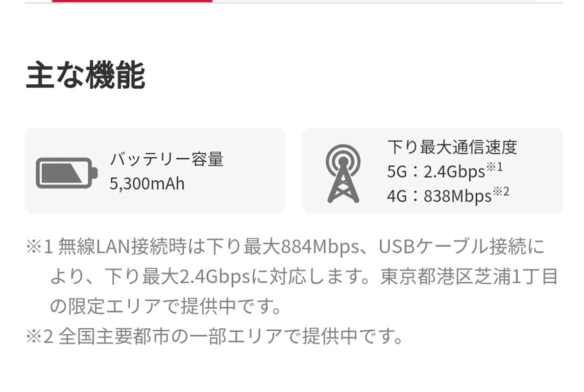 - 5G پرسرعت و با ظرفیت بالا (فرکانس جدید) در مناطق محدود موجود است. ویژگی های فرکانس های جدید 5G (28 گیگاهرتز، 3.7 گیگاهرتز). Pocket WiFi® 5G A102ZT از 28 گیگاهرتز پشتیبانی نمی کند.